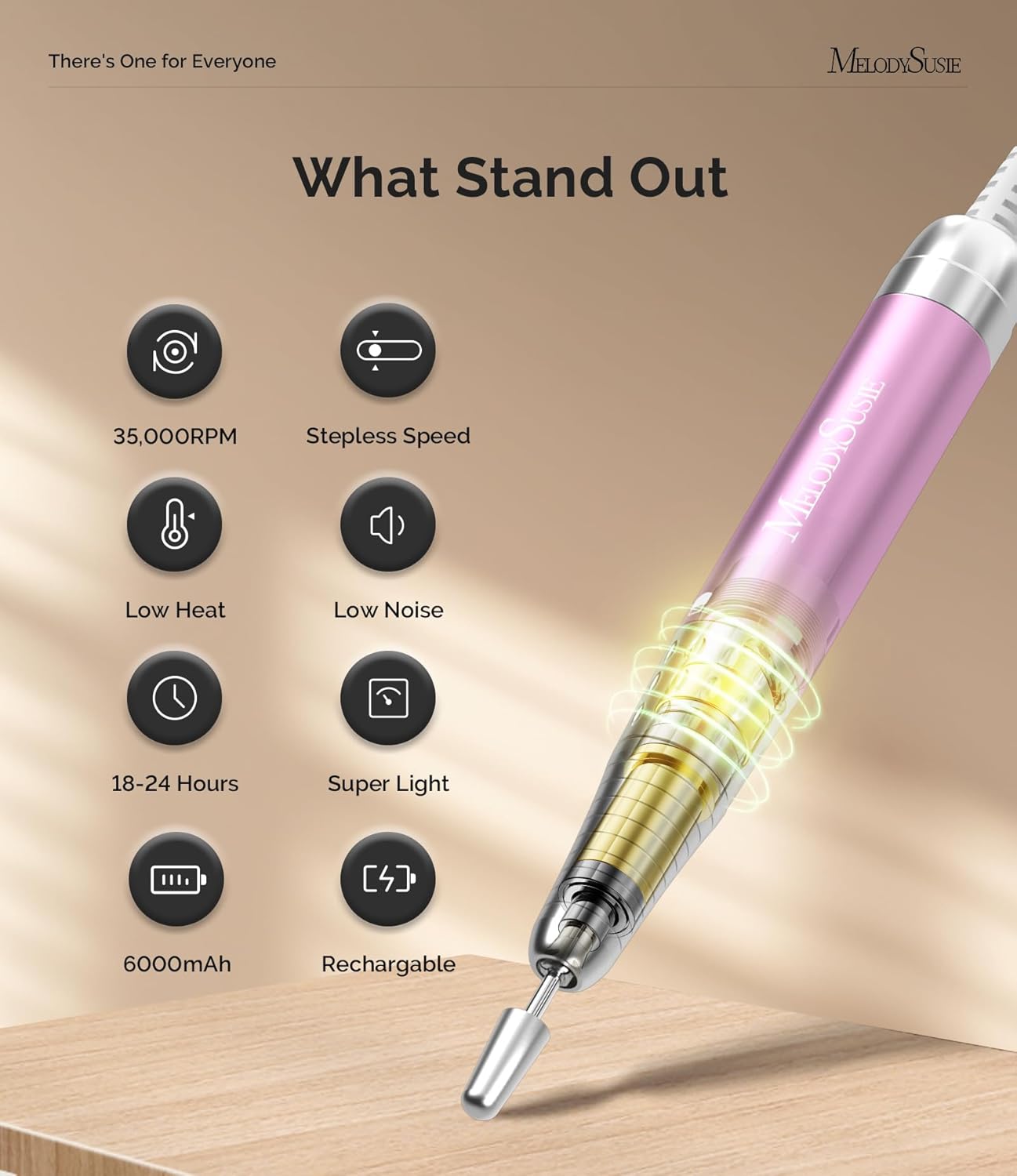 💎MelodySusie Professional Design: MelodySusie marquise diamond cut texture design. Let’s DIY your own nail like a pro. The elegant yet eye-catching design marries beauty with strength. The color of the electric nail drill consists of rose gold and white and is simple but elegant and romantic.